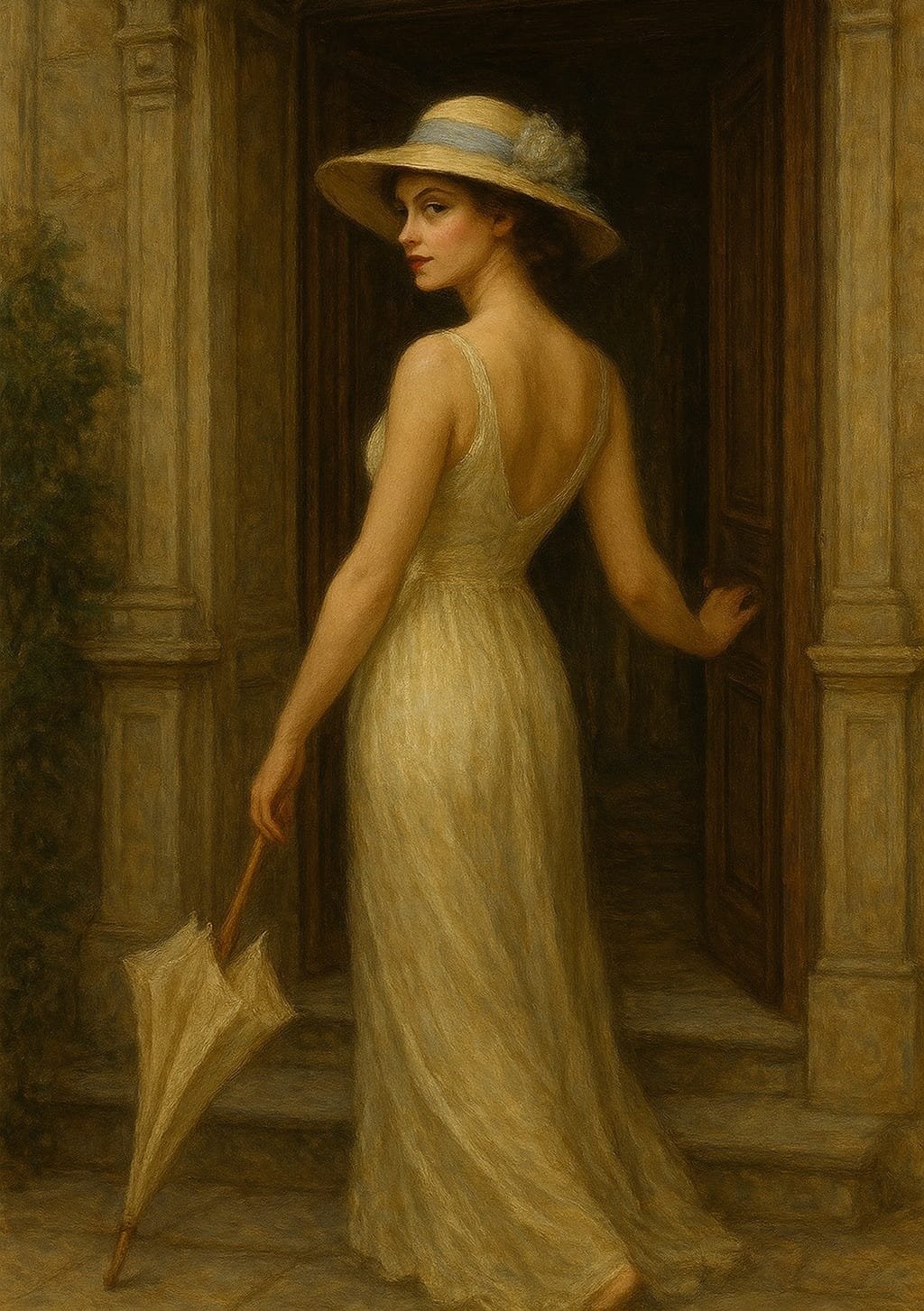 Esta vez fui primero, me levanté y le di un apretón firme, tomándolo con mi otra mano por su antebrazo. Cuando elevé la vista, detrás suyo vi a Elisa pasar con su sombrilla, dirigiéndose hacia la vieja mansión con ese andar seductor, casi danzante, consciente de mis ojos siguiéndola. Antes de entrar, giró su cabeza hacia el costado y mirando el marco de la puerta lo rozó con los dedos, como si reconociera algo que había sucedido allí.