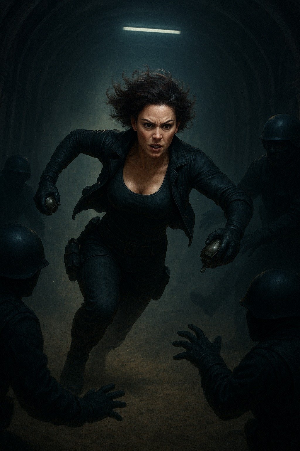 Tenía la mirada fija en el cuerpo de su amado, consumida por dentro. La pérdida de Martín la destruyó: ya no quedaba nada de su familia. El viejo Scaglia, herido y paralizado desde la cintura, apenas podía consolarla; ni quiero pensar en el dolor que soportaba en su espalda. Sus guardaespaldas —los dos que quedaban— montaban guardia atentos a un nuevo ataque. El pobre grupo restante preparaba las armas recuperadas para la huida; arriba nos esperaba el monorriel, nuestra vía de escape, varado desde el ataque del aeromóvil.