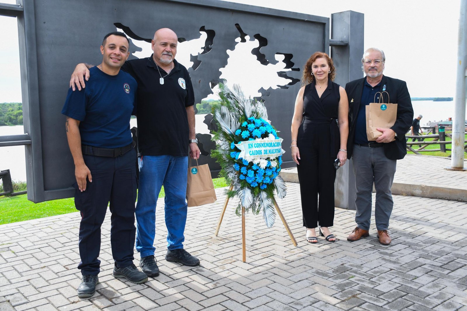 La jornada incluyó el izamiento del pabellón nacional encabezado por el intendente Martín Gherardi, junto a excombatientes y veteranos de Malvinas, en un momento cargado de memoria y respeto.