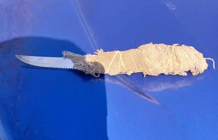 La persecución no tardó en comenzar, y los efectivos policiales lograron interceptarlos a la altura de la estación de servicio YPF. Durante la requisa, uno de los detenidos portaba un cuchillo tipo Tramontina, con una hoja de aproximadamente 10 centímetros, cuyo mango estaba envuelto en un trapo sostenido por bandas elásticas. Además, se verificó que la motocicleta no presentaba impedimentos para circular.