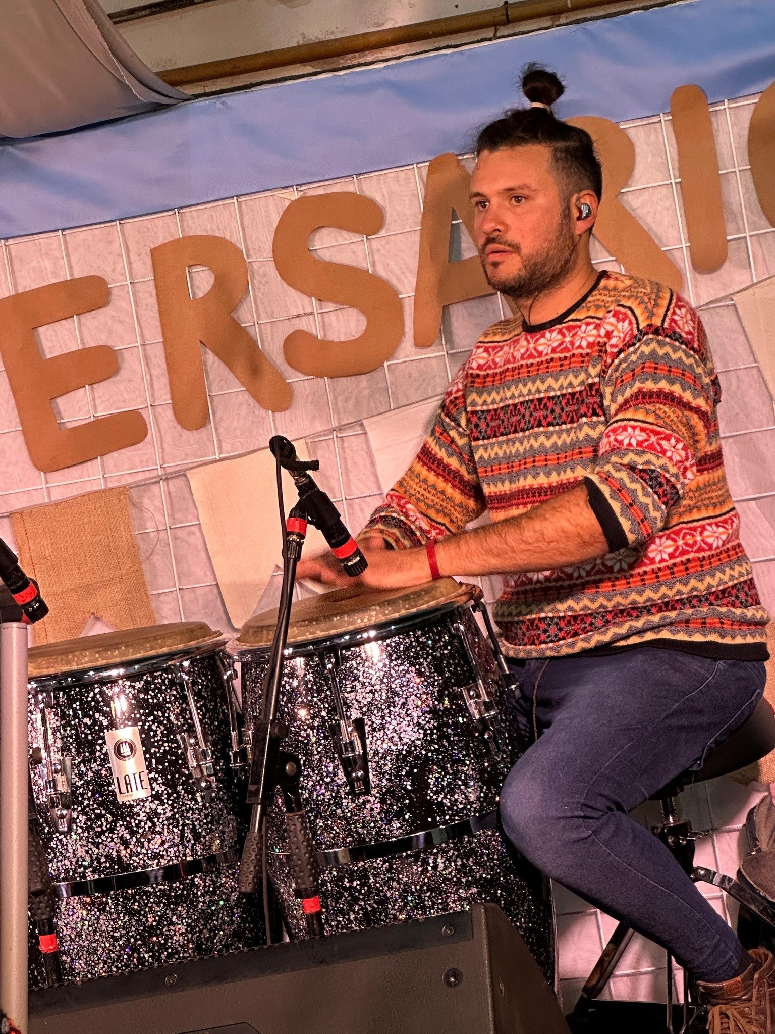 El taller incluye batería y percusión, y el material de trabajo está a cargo del docente. “Todo el material lo brindo yo. La idea es que nadie se quede afuera por no tener instrumento”, aclaró. Las clases tienen una duración aproximada de una hora y el enfoque es mayormente práctico, con una fuerte impronta rítmica. “Evito mucho la partitura, sobre todo al principio. Prefiero trabajar desde lo analógico, la coordinación y la escucha”, señaló.