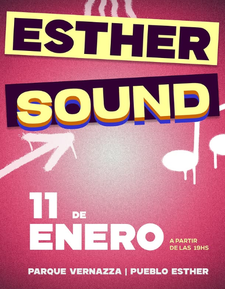 Esther Sound llega al Parque Vernazza con artistas locales y regionales. El evento, parte de las actividades de “Ciudad de Noche” organizadas por la Municipalidad de Pueblo Esther, promete una jornada inolvidable con música, gastronomía y arte.