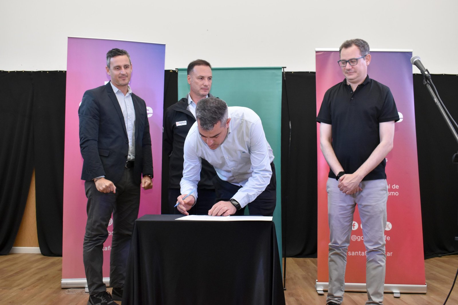 El acto fue encabezado por el Ministro de Obras Públicas de Santa Fe, Lisandro Rudy Enrico, y el Intendente de Pueblo Esther, Martín Gherardi. También participaron el Senador por el Departamento Rosario, Ciro Seisas; el Secretario de Agua y Saneamiento, Leonel Marmironi; y la Directora Provincial de Intervención de Hábitat, María Laura Lucci. Estuvieron presentes el Concejo Deliberante, autoridades de CLESAPE, autoridades del Jardín de Infantes N° 326 e instituciones locales.